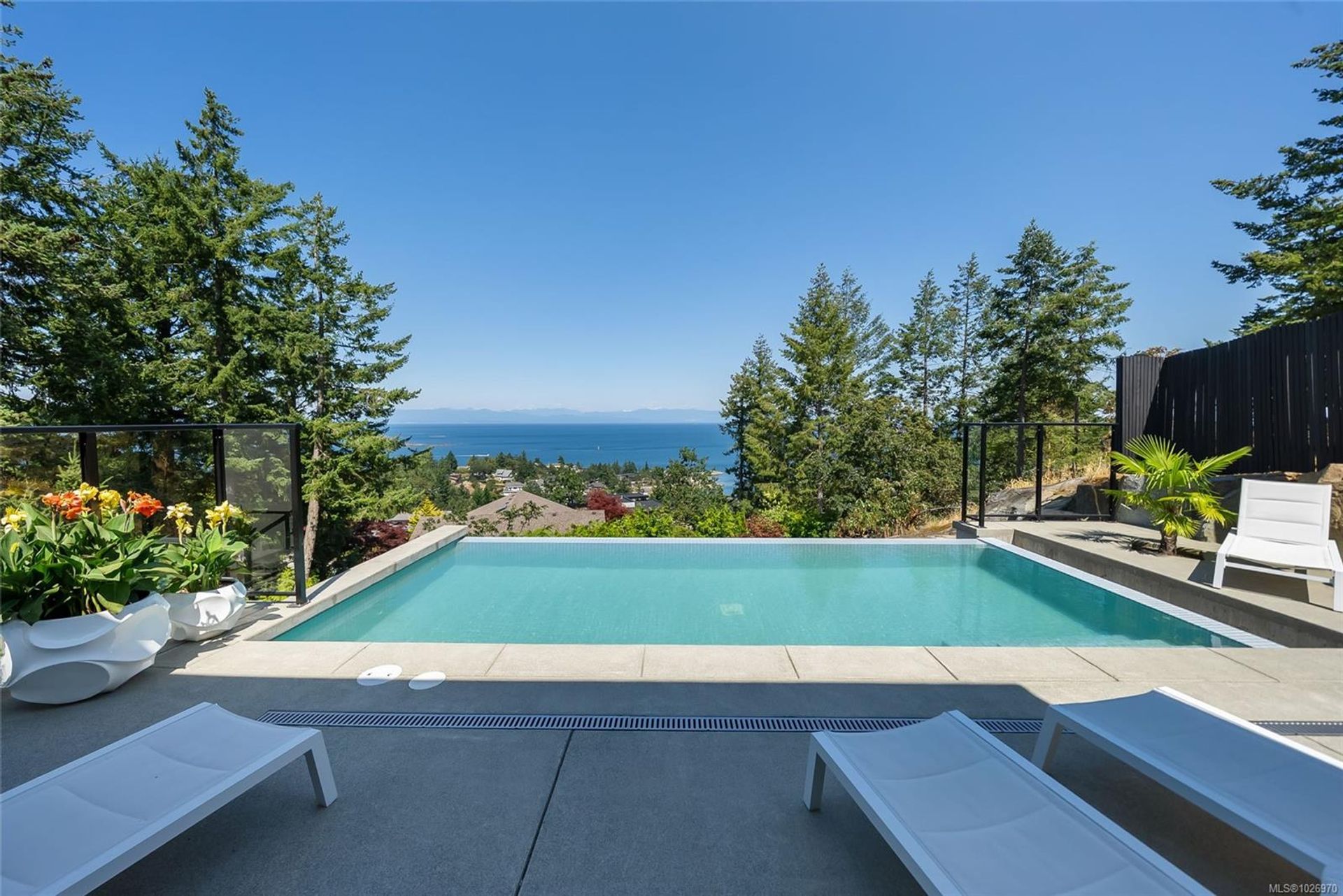 Exquisite Fairwinds Villa with captivating Ocean Views. Once in a lifetime opportunity to own a glorious custom home with elegant designer details in every room. The great room will captivate your imagination, flooded with natural light, soaring ceilings and a dazzling open plan Kitchen (with Butlers pantry), all flowing out onto a generous patio for al fresco dining with an infinity pool framing the magnificent Ocean vistas. Relax in your luxurious Primary Suite with glamorous walk in closet and blissful ensuite. Generous guest accommodations, both in the main house and in the separate studio allow for gathering of family and friends. Art niches and inspiring light fixtures allow you to create artistic scenes throughout your home. This unique architectural home nestled into low maintenance landscaping will allow you to live Your Vancouver Island Dream Today.